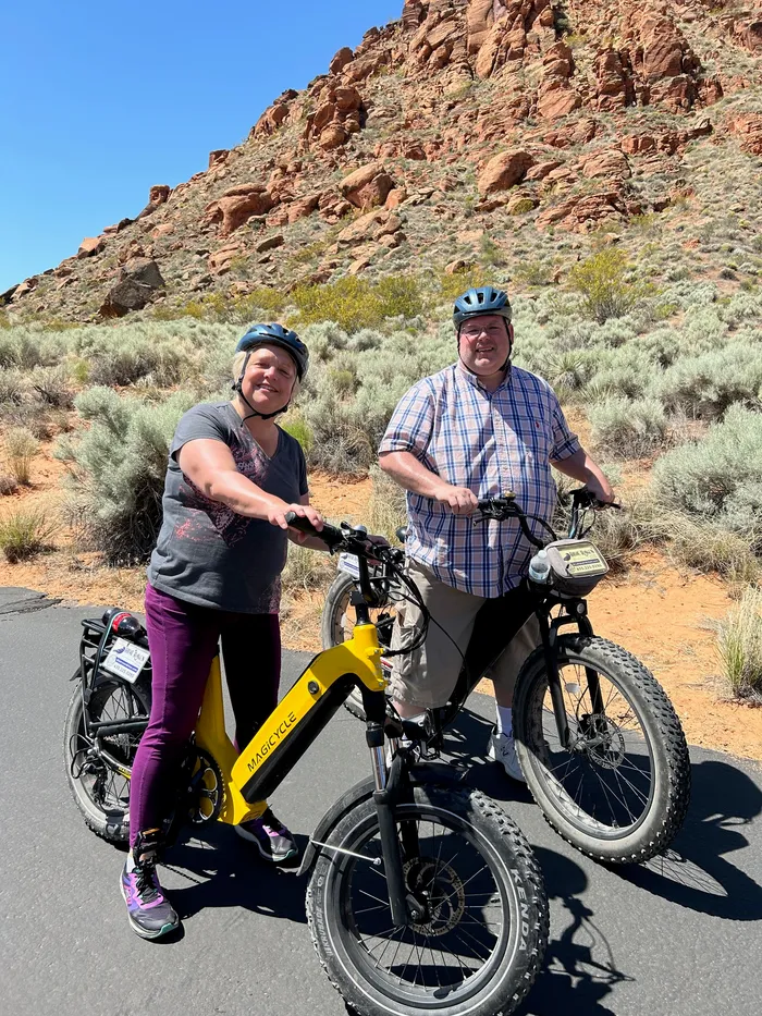 It all started with a trip to St. George, Utah—a vacation meant for relaxation but one that turned into an unforgettable adventure. Jessica and Ed had never ridden an e-bike before, and when their niece invited them on a ride through Snow Canyon, they felt hesitant. Were they really ready for this? The idea of navigating winding trails on unfamiliar bikes filled them with a bit of nervous excitement.